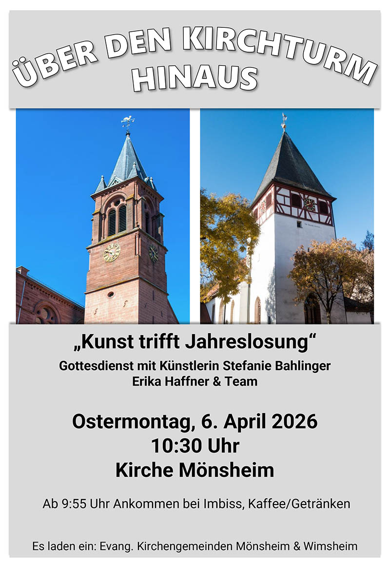 Herzliche Einladung heute Nachmittag zum Familien-Gottesdienst in Mönsheim in der Kirche -
